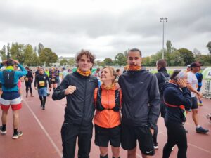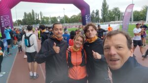 Surtout la reconnaissance du parcours 10 jours avant et l’échauffement et le départ car en quelques secondes, il me dit « bonne course maman et on se retrouve à l’arrivée »!!!!