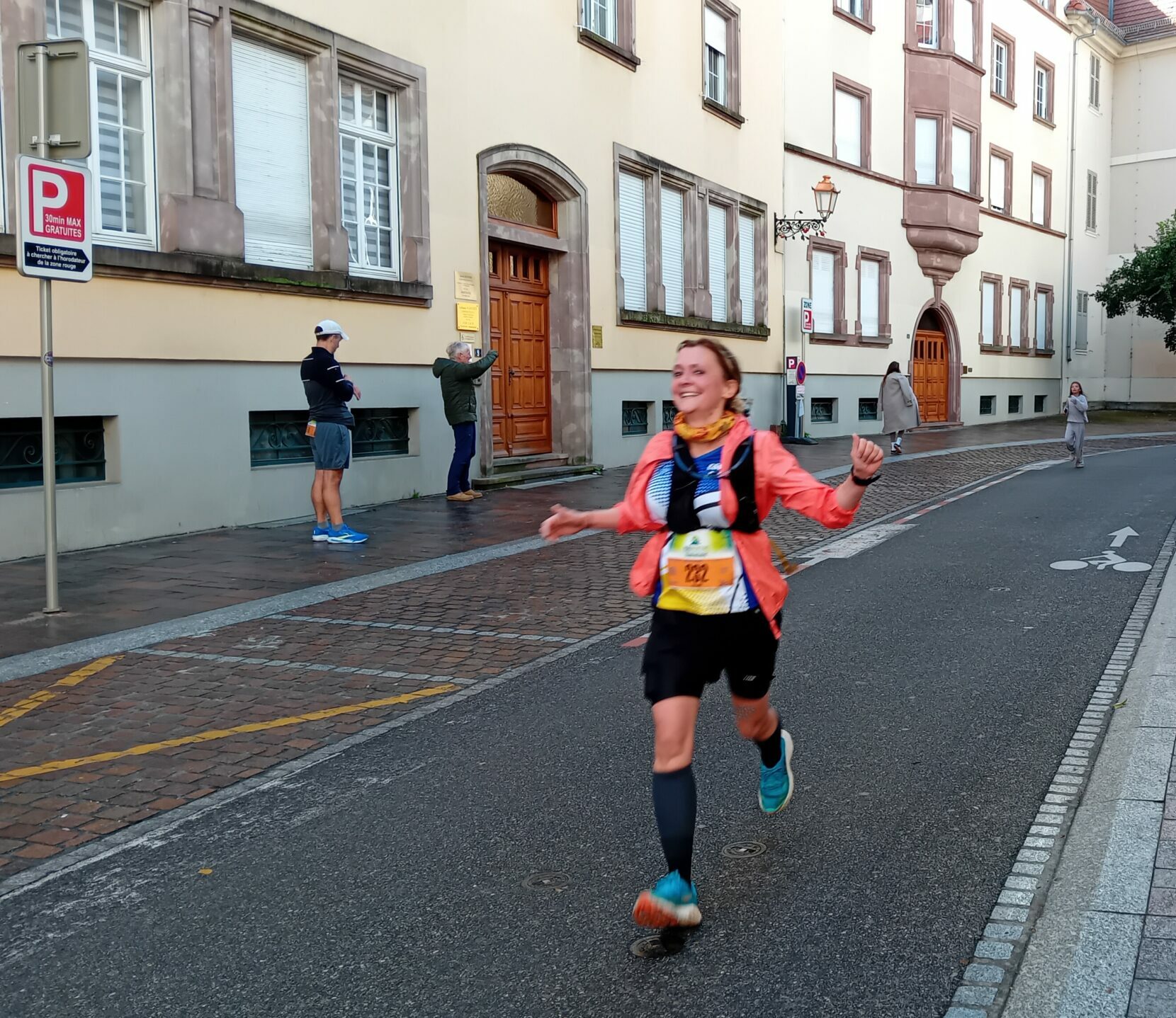 Quelques foulées plus loin, les policiers municipaux puis la brigade verte qui m’encouragent et m’applaudissent.